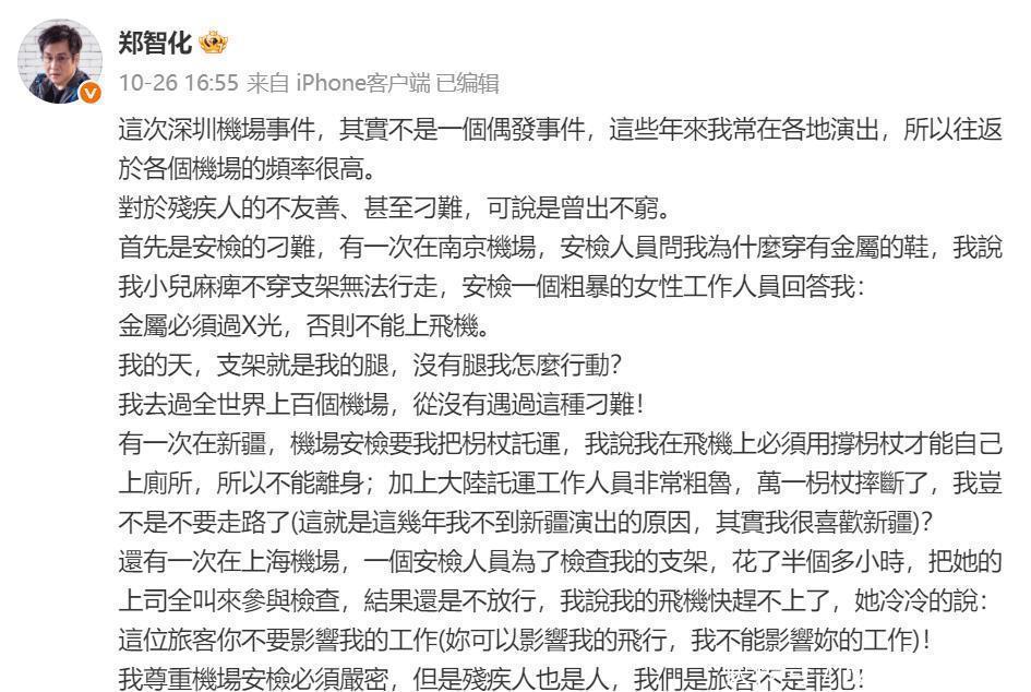 文|辣辣郑智化的一首《水手》,相信大家都不陌生,鼓励了不少人。因为他告诉了大家什么是身残志不残,努力唱歌追梦。谁能想到,他会有人设崩塌的一天。深圳机场的事件后续发展,引来多人批评,这是凉凉了。